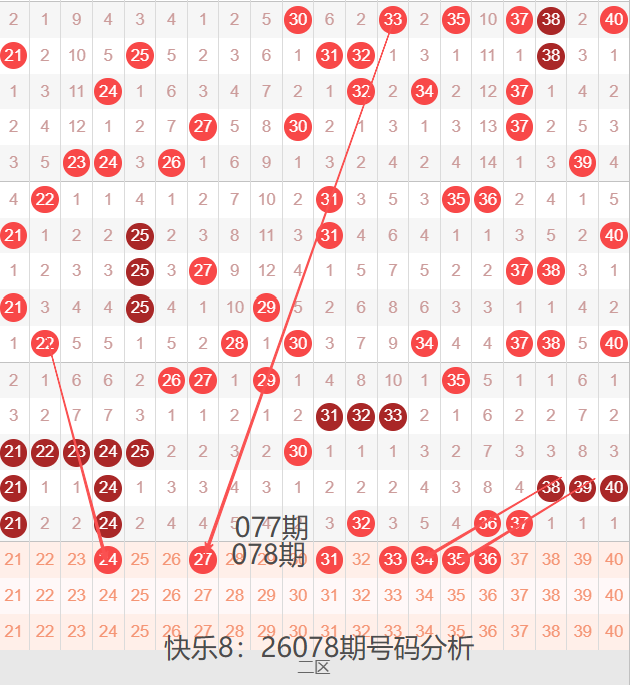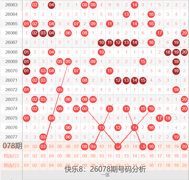 快乐8:26078期号码走势分析