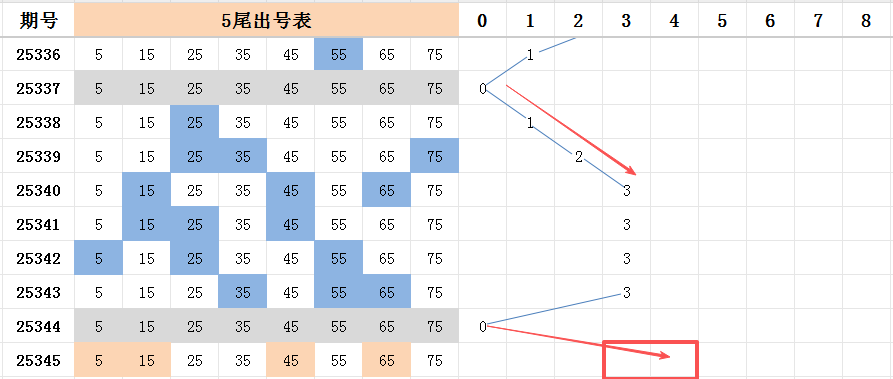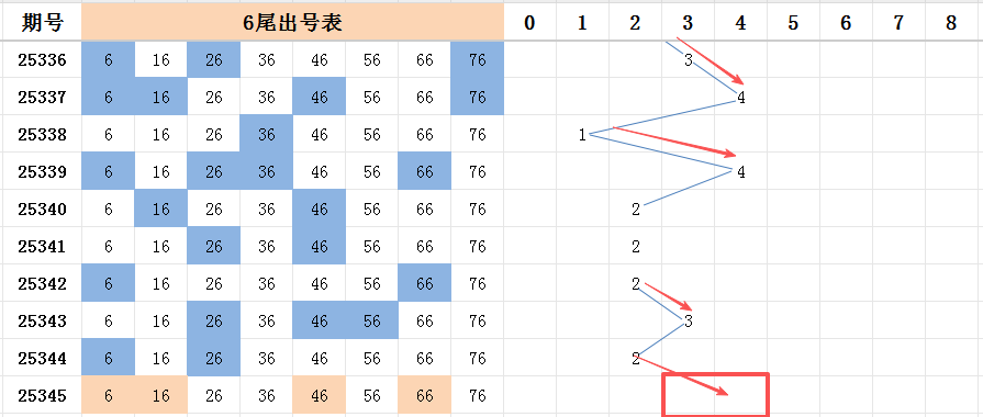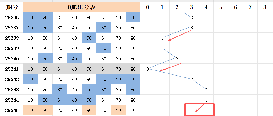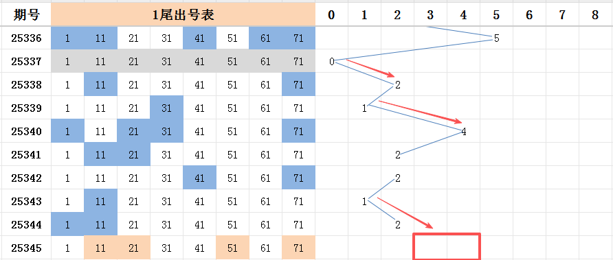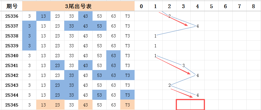本期看好号码开出的范围是两码走势至四码走势之间。上期三尾和0尾均开出四码走势,为上期开出号码最多的两个尾号。这两个尾号也均是今年的热尾!咱们判断三尾在今年最后的几期中,会再次开出一期多码走势,近三期开出两次四码走势,均差一码。本期继续看好三尾的号码。