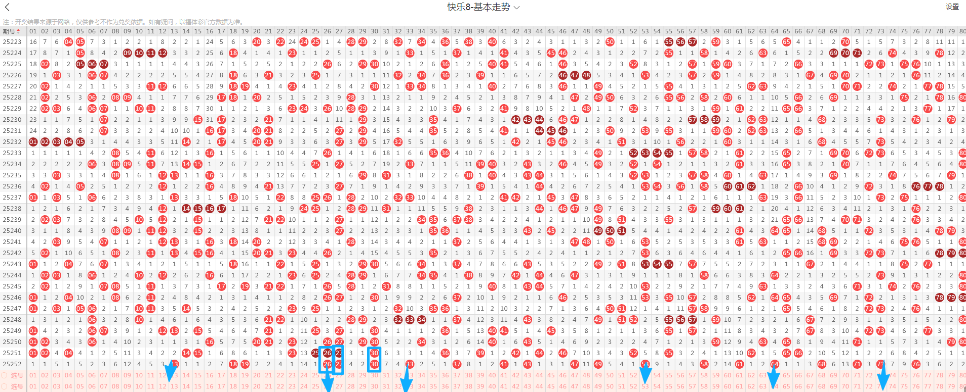 “专注快乐8,开心快乐吧!”您好,我是九尾锦鲤,有幸与您在这里相遇。上期(快乐8第2025252期)分析和推荐部分正确!今天组号上会继续努力!小车方案已精选优化,期望对您今天的选号、组号有所帮助。下面是我关于快乐八2025年第253期的走势研判分析及精选推荐。