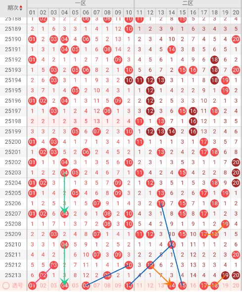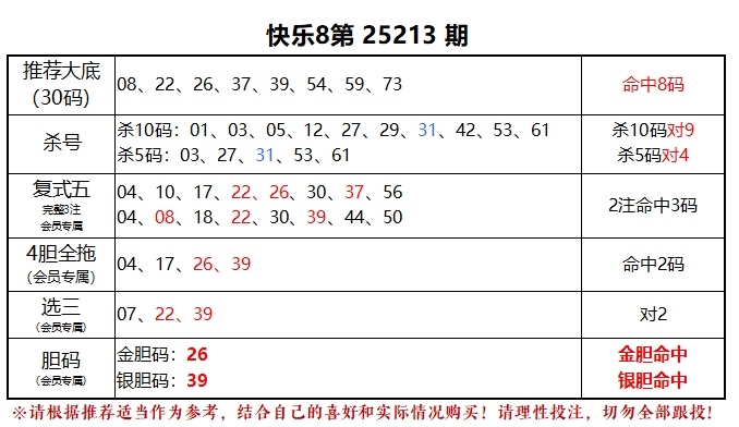 结合上期的数据分析,对快乐8第25214期的推荐如下: