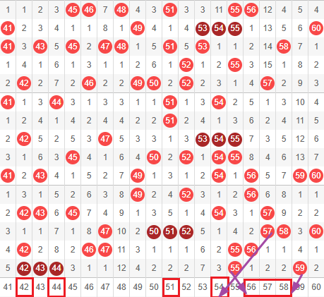 三区推荐号码为:42,44,51,54, 56+57+58.