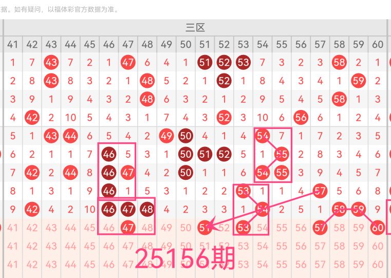41-60区间,在上期开出了7个号码(42 46 47 48 54 58 59),按照走势规律,密集出号后往往会出现一定程度的回落,预计本期会减少到3-4个左右。号码47虽然上期已经开出,但是历史遗漏较大,本期有可能会继续出现,形成宠爱后形式。号码60遗漏9期,但其历史出号频率较高,值得特别关注。号码51、53和55作为本区间较热的号码,存在一定的回补率,看好此号码的出现。因此综合推荐该区间号码【47 51 53 57 60】