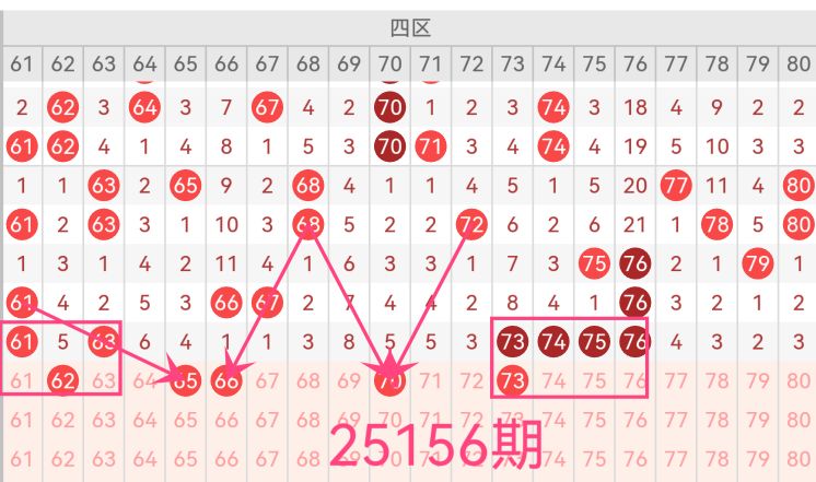 上期福彩快乐8第 2025155期开奖号码为【07 10 12 18 27 32 34 42 46 47 48 54 58 59 61 63 73 74 74 76】,其中大小比为13:7,奇偶比为8:12,和值为916,跨度为69,四区间比为4:3:7:6。下面是对本期对于 01 - 80 的四个区间进行详细分析。