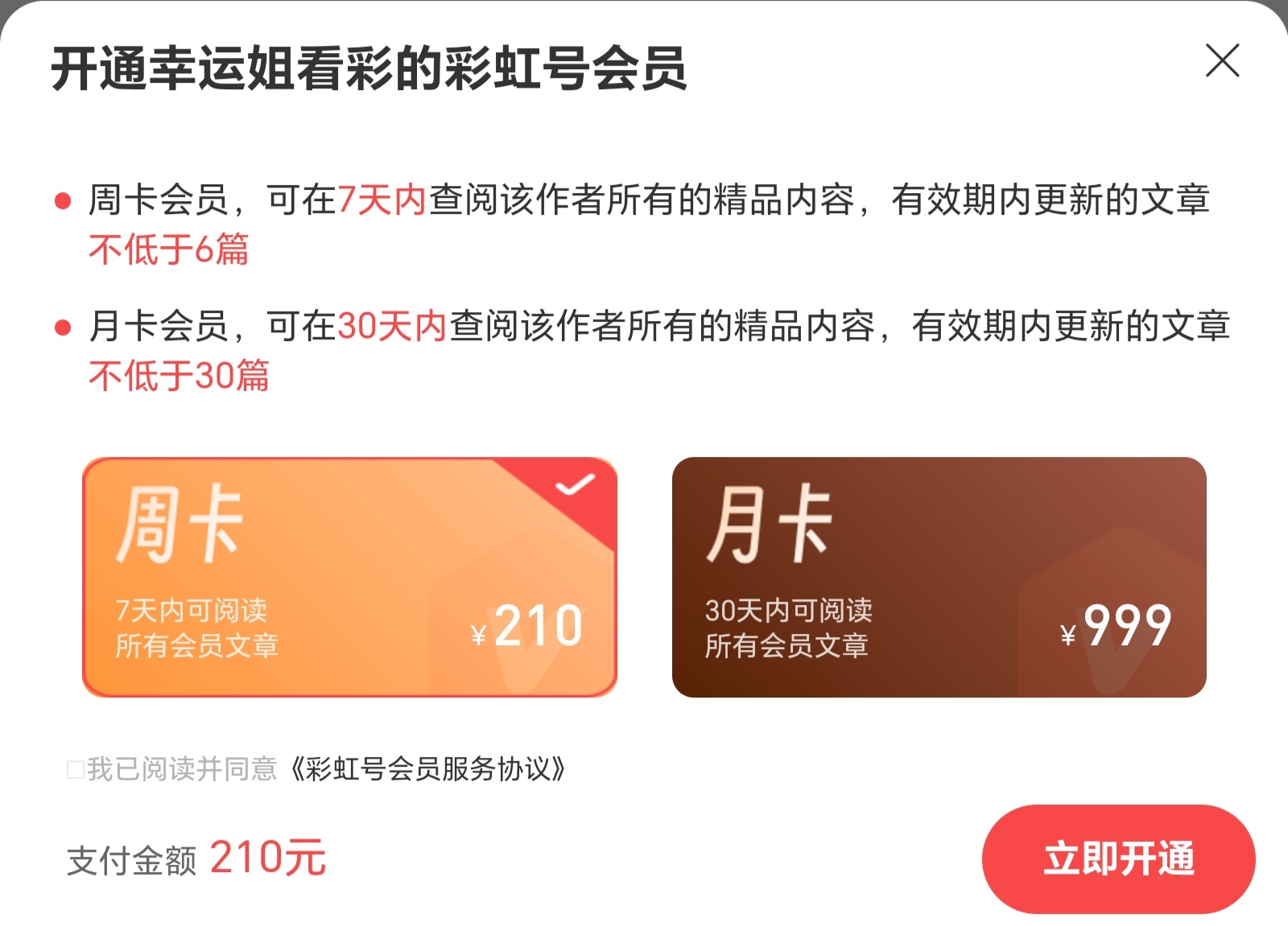 解锁幸运姐单篇会员文章38元,解锁周会员,单价220元,一周畅享所有文章,解锁月会员,单价999元,一月畅享所有文章。