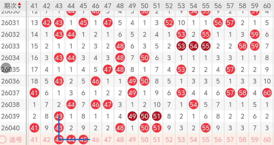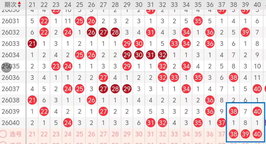 第二区间的走势分析:第二区间上期开出了五个号码球,主要的落号点位在二区间的后半区,走出了三奇两偶的形态走势,上期二区间的前半区落下了一个号码球,后半区落下了四个号码球,整个二区间处于温态的趋势,根据二区间的走势规律,今天的二区间我们主看二区间凤尾处38 39 40这三个号码球的落位,39是冷码的落位,38 40走出了对称的形态走势,落下一码的机会很大,这三个号球建议大家打个三胆拖,或者打个三码复二比较稳妥,参考为主!