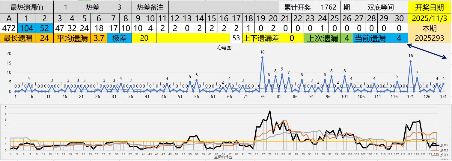 2、历史最长遗漏纪录24,当前遗漏4,距离极值还有20期。