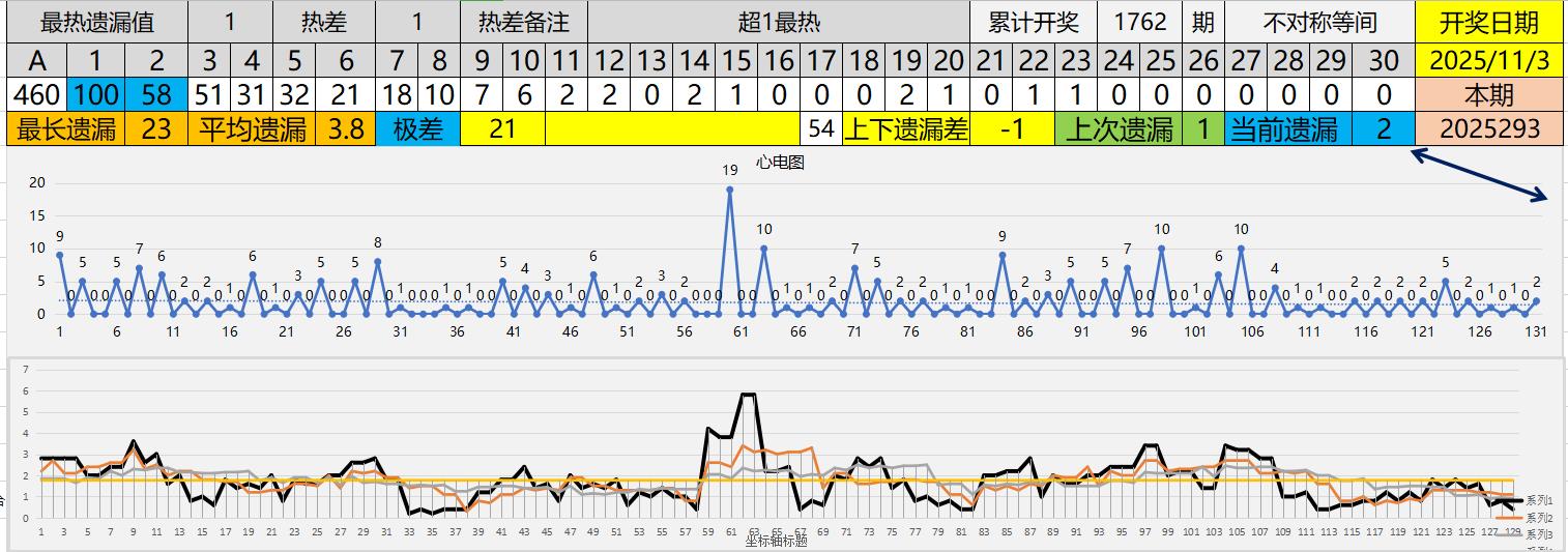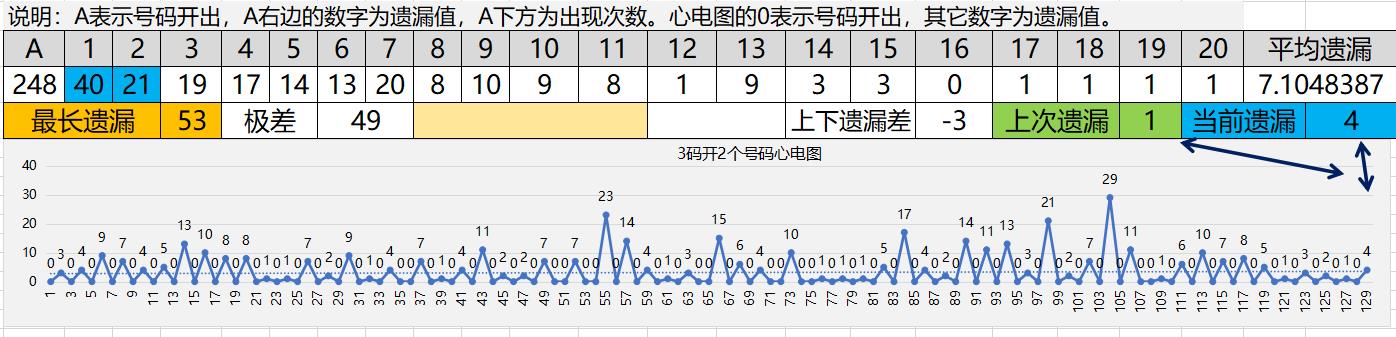 2、历史最长遗漏纪录23,当前遗漏2,距离极值还有21期。