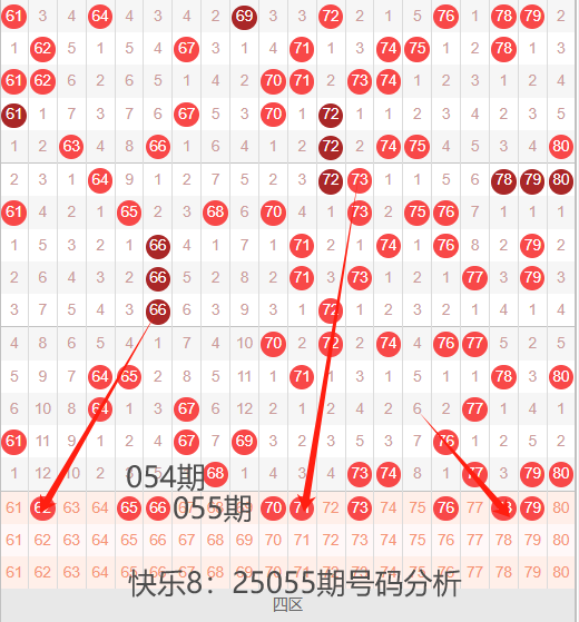 回顾25054期开奖号码:02 07 13 20 28 39 41 43 46 49 51 56 59 60 68 73 74 77 79 80 ,最近一段时间号码爆区几率特别高,目前已经连续多次出现爆区热开的情况,爆区之后基本上都是迅速回调,转换至其他区间继续暴热,大家若是能抓准区间,或许有很大的机会,但是号码的变盘规律是非常的快,很难把握,个人建议谨慎选择,不要 盲目的去操作~~
