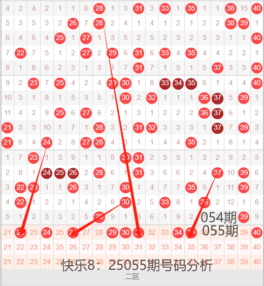 二区间21-40号码球走势,如下图: