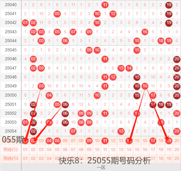 25055期,我们先看下一区间:01-20号码球,如下图: