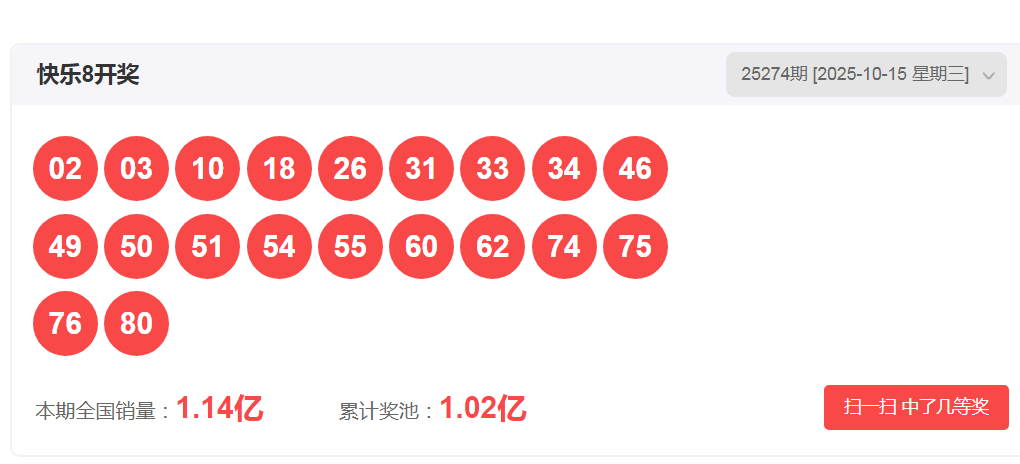 一、快乐八2025274期开奖号码
