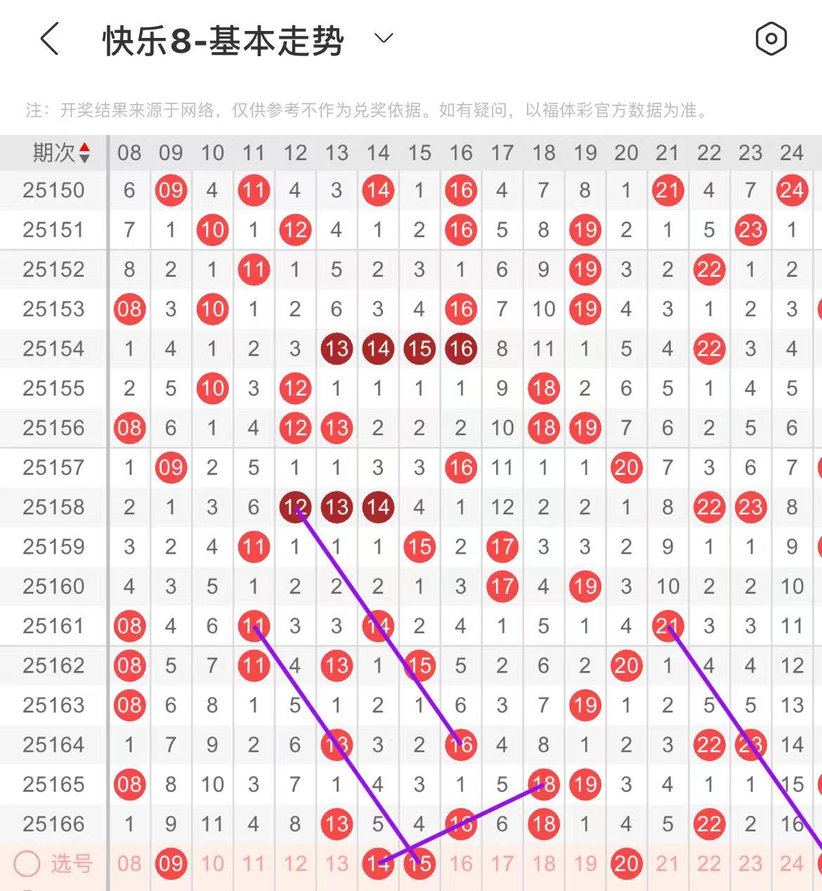 11-20区:本区间上期开出了三个号码,从号码走势图上看,该区现属于温号区,本期重点关注区中号码回补,出号个数应该在三个号码左右。本期有出号走势的号码有14.15号,均有斜连出号走势,20号,隔期相同出号走势。