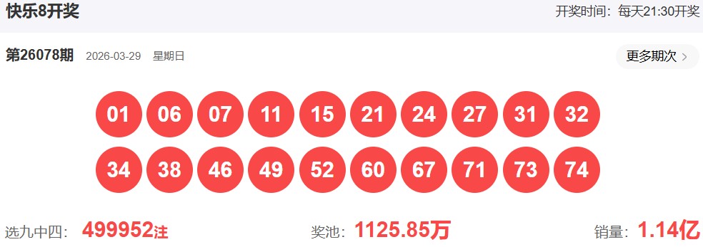 快乐8第2026078期开奖号: