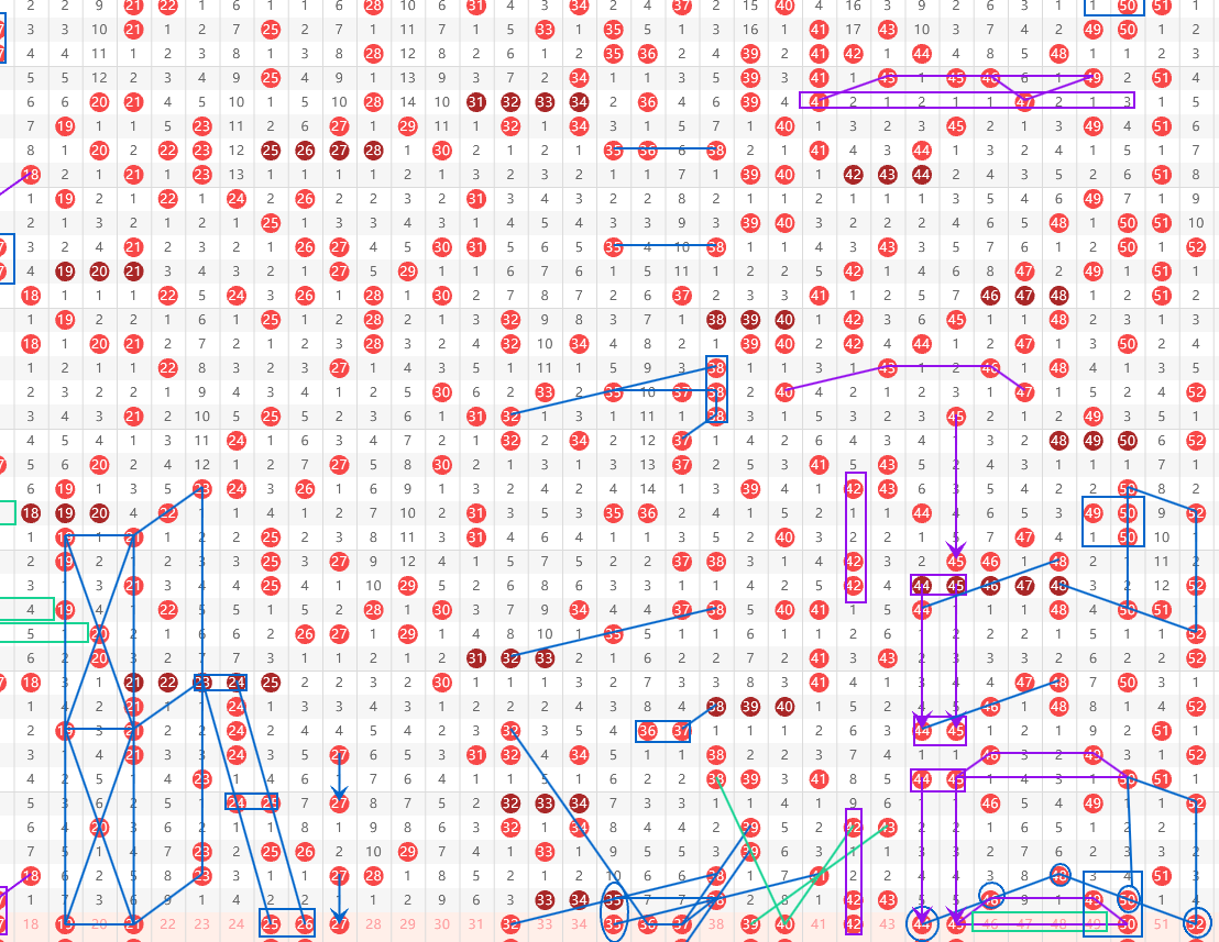 分边号码看好32-36-37-39,防2码的回补,看好32-37.