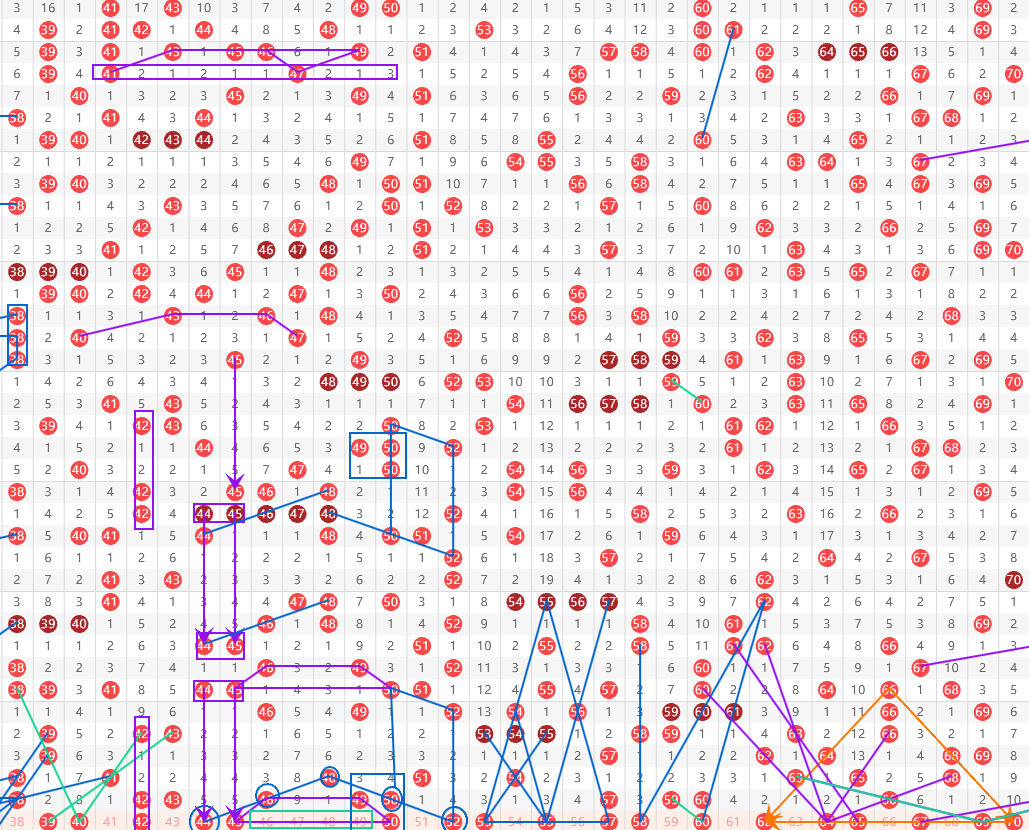 分边号码看好65-67、70-73,、75-79,注意防2-3码的开出机会!