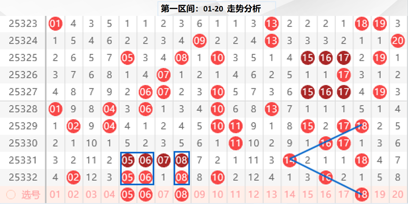 一区分析:【01-20】(走势图标注号码非小黄车大底,请谨慎参考,具体思路将在直播间分享讨论)