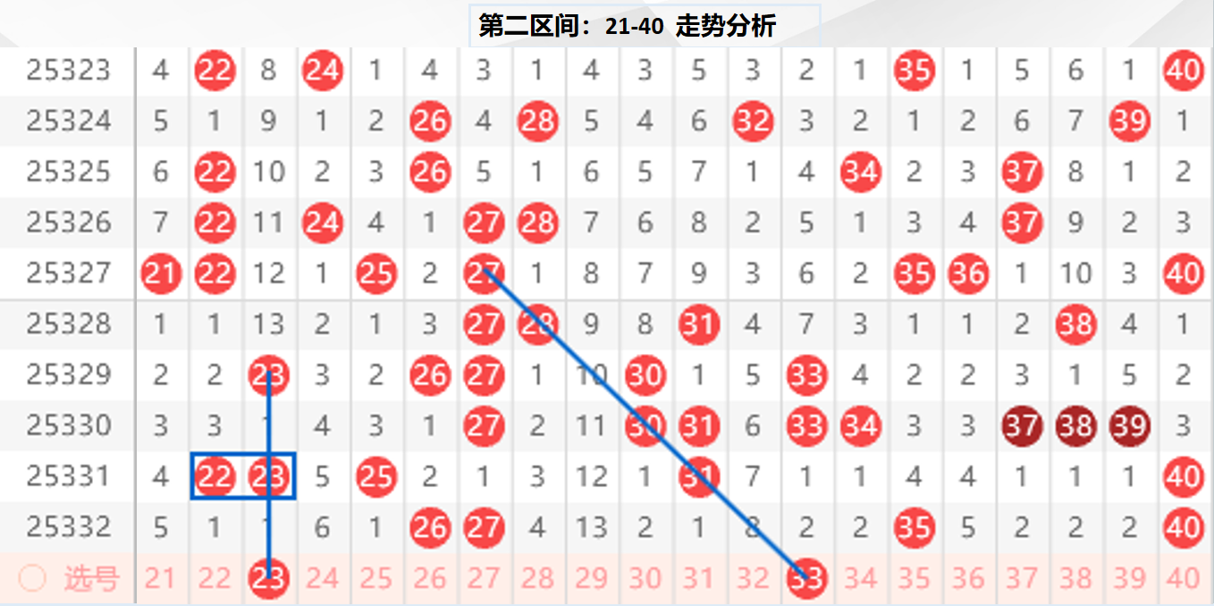 二区分析:【21-40】(走势图标注号码非小黄车大底,请谨慎参考,具体思路将在直播间分享讨论)