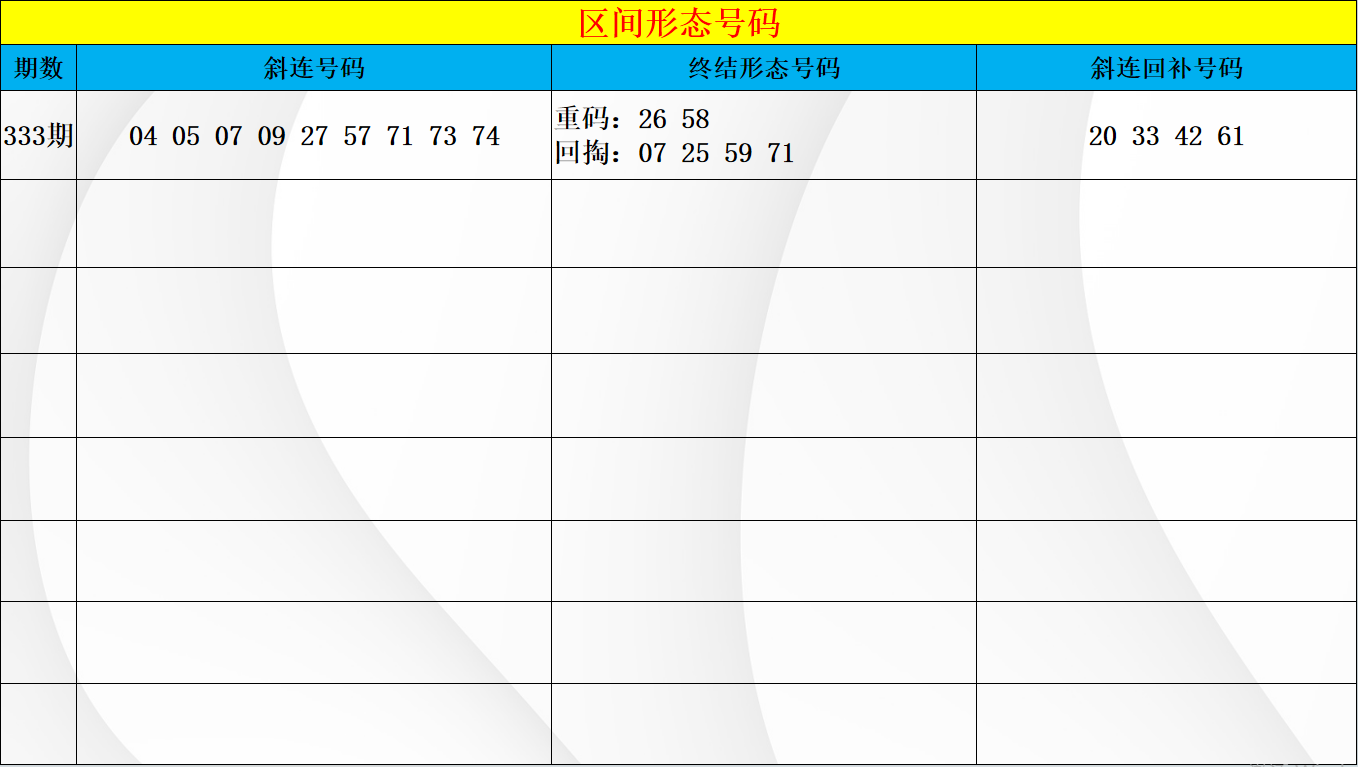 上期三区开始出现回补,主要开号位置还是在集中在后区的形态出号,前区在断头的回补中还是少码出号,从近期在断头区间的回补模式上判断重点,前区还是要考虑持续回补的模式,空位中的对应点位也大多都是在前区上的出号位置,而空位开出温冷号码之后就要特别注意接力周期上的出号重点,温冷中考虑空位中的42 43 45 46 51五码中的侧重布局,做1-2码的接力出号判断。而在形态上本期要关注48 58的同尾组合以及在区间出现的三同路出号模式,48 54 57的下方结合近期在所有区间开出的形态重点判断,分边中要优先考虑出号选择,防守重码的开出,但同时在放空的点位上也要重点研判位置,近期三同路的开号模式上大多也都是有放空的点位。综上在三区的布局中以形态为重点就是侧重在同尾和三同路的布局,空位中接力周期回补上的重点即可。