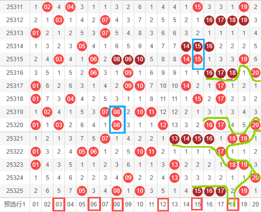 18:18这个号码前几期本人一直在推,看走势图,这几个号码一直连出,上期开出15.16.17三连,还有右侧邻号19,本期18回补可能性很大。