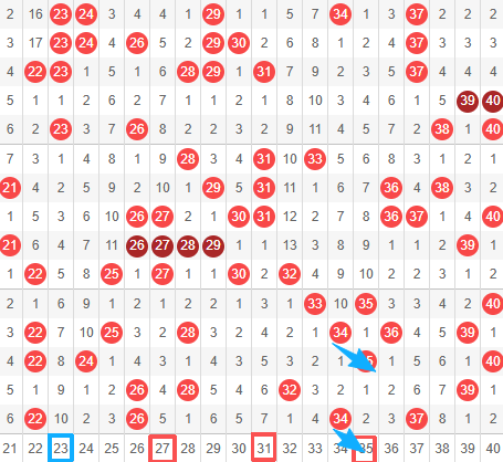 23:   23截止目前已10期未出,可作为冷号备选了。