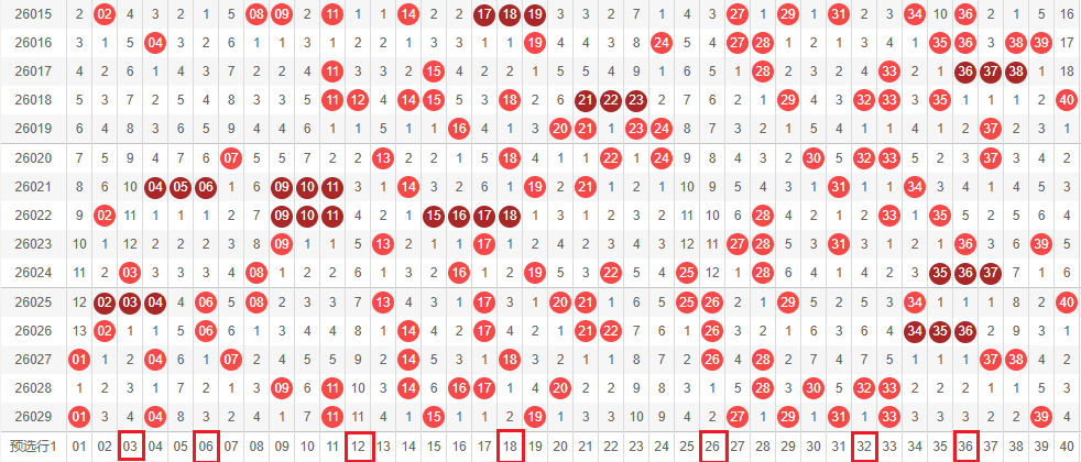首先我们看下上期开奖结果,快乐8第26020期开奖结果:01 04 11 15 19 27 29 31 33 39 43 45 52 58 65 67 73 75 77 ,和值为:833,大小10:10,四区5:5:4:6,未开出连号,直连重号出了2个,分别是:33.58,其中58是六连重号,33为两连重号,我们把01-40分为前区,41-80分为后区,上期大小号一样多,均为热号和温热号。
