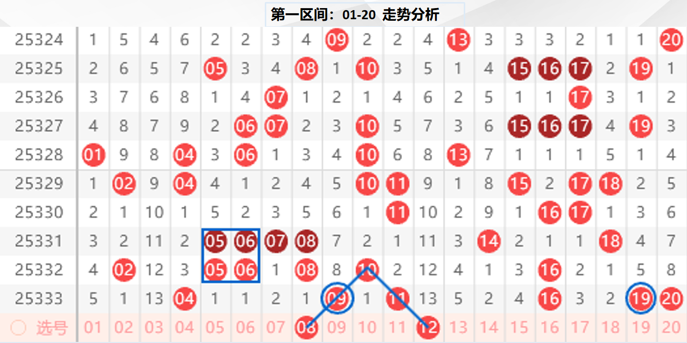 一区分析:【01-20】(走势图标注号码非小黄车大底,请谨慎参考,具体思路将在直播间分享讨论)