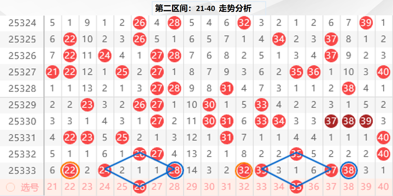 二区分析:【21-40】(走势图标注号码非小黄车大底,请谨慎参考,具体思路将在直播间分享讨论)