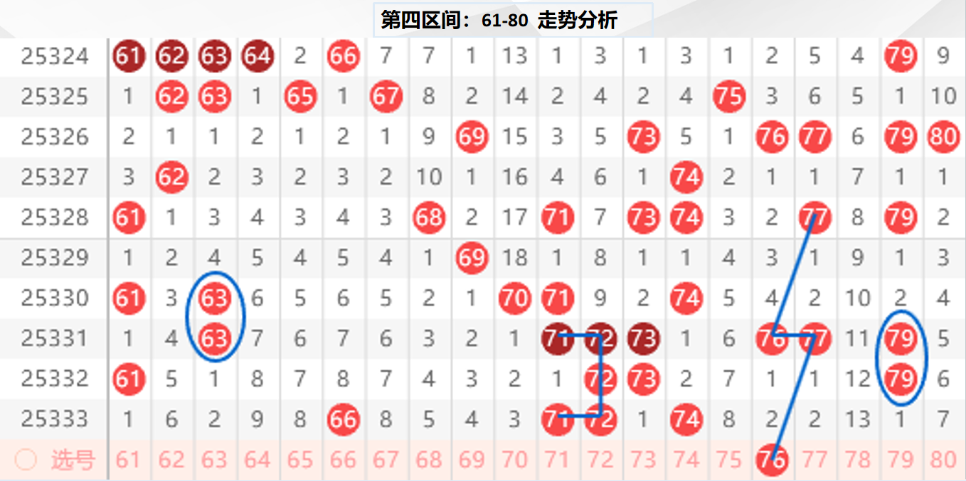 四区分析:【61-80】(走势图标注号码非小黄车大底,请谨慎参考,具体思路将在直播间分享讨论)