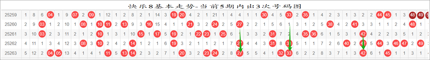快乐8第2025264期多条件统计分析组号