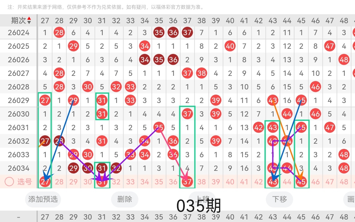 通过以上对上期的简单回顾,下面进入2026035期(下面简称本期)的选号分析: