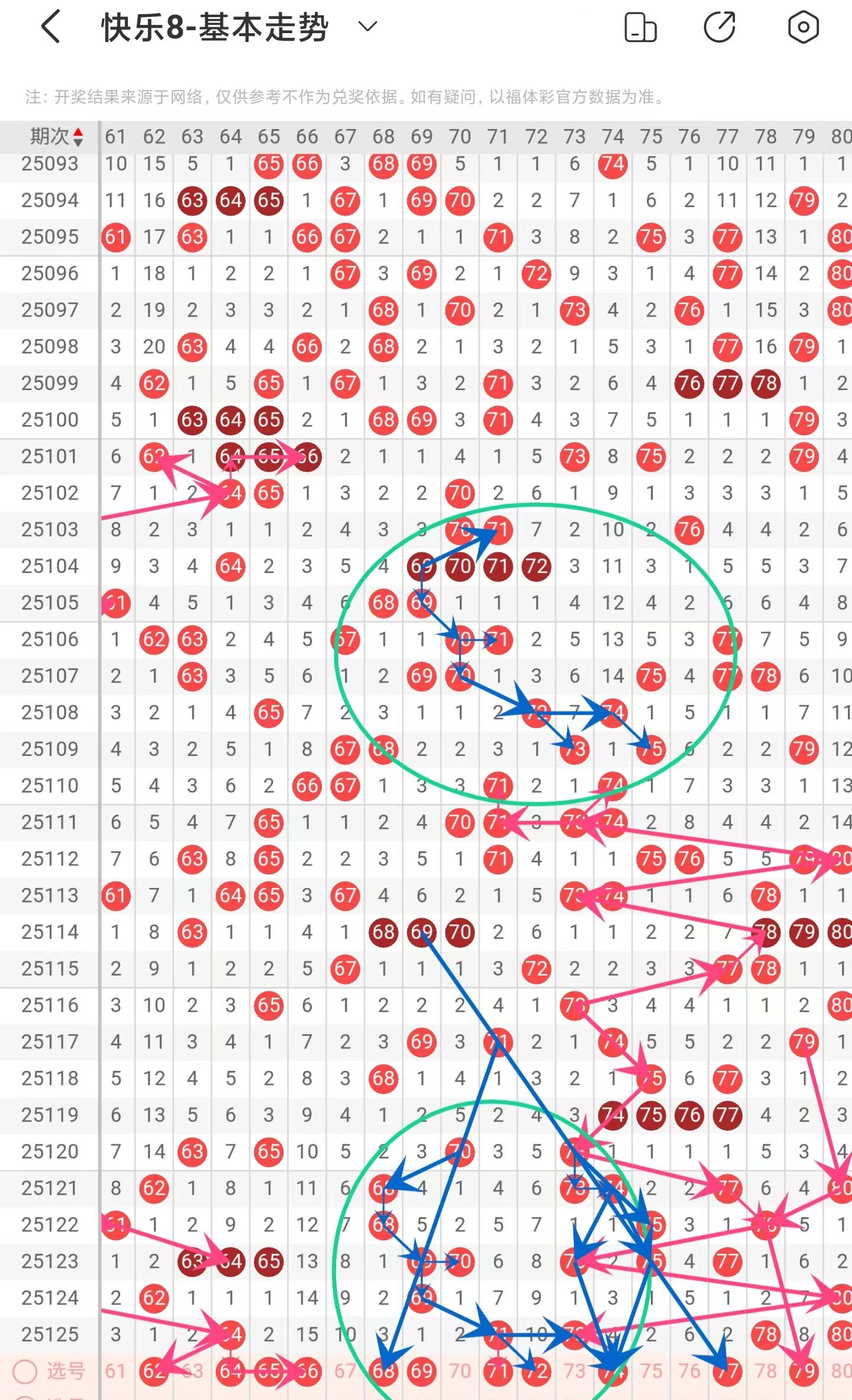 本期注意一区间的稳定落号、二区间的增加落号、三区间的减少落号、四区间的稳定落号,防范近期冷热回调,本期推荐关注06-07-13-19-27-29-33-38-42-44-47-49-53-56-63-65-68-69-71-72-74-77-79。本期期数增减法号码13-27-38-68-69-72,注意考虑。