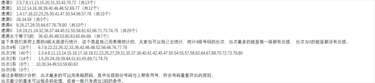 我们来统计一下当前号码遗漏情况: