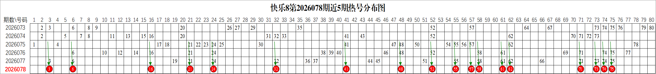 以2026076期福彩快乐8号码为例: