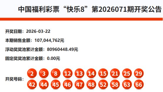 首先我们来回顾快乐8第2026071期开奖号码: