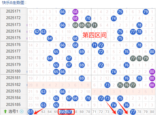 上期四区间开出了4奖号(63.65.74.76)上期的四区开4个奖号呈现了一个递减的趋势,开出的奖号7头回补2个,6头开也是回补了2个,先来看号码61在近 30 期内属于比较冷的号码,近期出现频率相对冷一些,偶尔会间隔多期后出现一次,这个号码要注意防守,号码66具有一定的间歇性活跃度较热比如有时会间隔 3到4期就再次出现,也有时会间隔多期,近期整体出现频率比较热,近期还是要关注的.号码77活跃度近期比较稳定,有一定的间歇性。活跃度近期还算稳定,整体走势有一定的波动性.