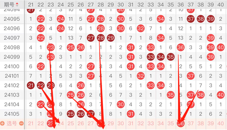 快乐八105期开出七码,【21-30】号码上半区间开出四码21 27 29 30 号、29出现座号走势,30号温码回落出斜连走势,近两期文章中也提过,27号为相邻号文章中提过,座号零,斜连一,下半区间【31-40】开出三码, 31 34 39号,39号码近期热度较大,座号一码,斜连性为零走势,冷号回补一。