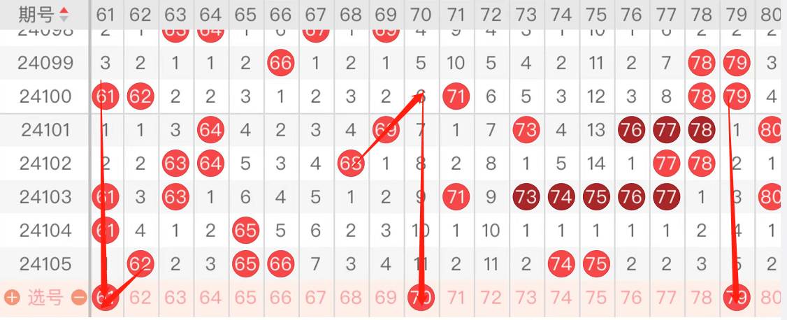 分区间号码可能出《5-7》个号码,本人关注61 67 70 75 79 80