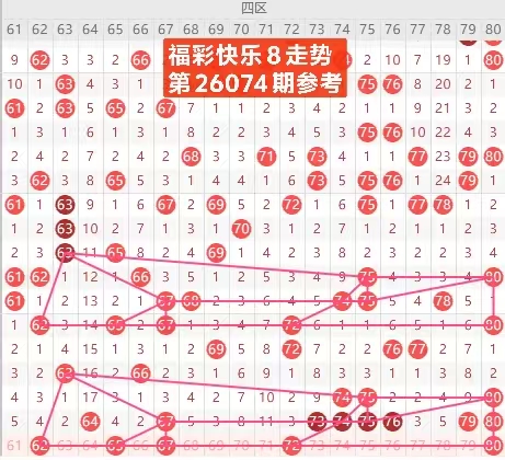 福彩快乐8是从01-80个号码中每期开出20个号码,我们把80个号码分为四个区:一区01-20号,二区21-40号,三区41-60号,四区61-80号