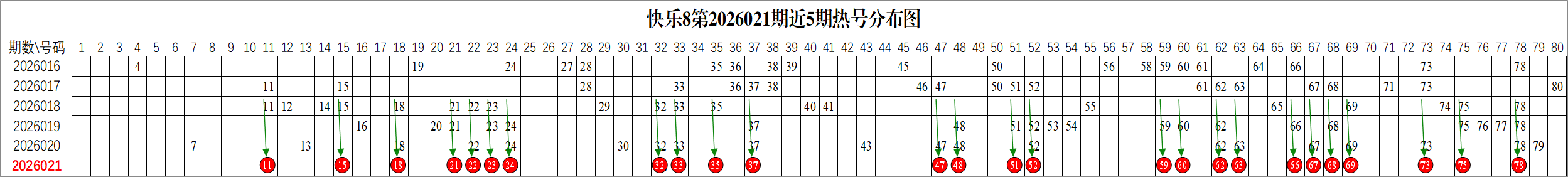 快乐8第2026021期多条件统计分析组号