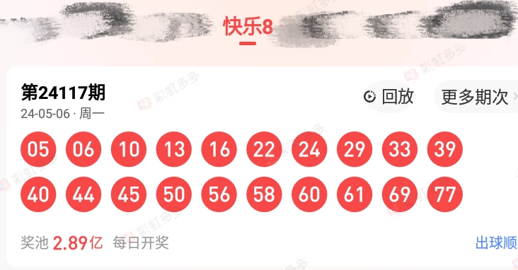 06-39共开出2个,平时防2-3个即可。大概5-6天开冷号6个以上一次,要记住这个4月26日特殊日子冷号开出09个。真没错,5月4号即隔8天又开出6个,下次即 5-6天后主看冷号。