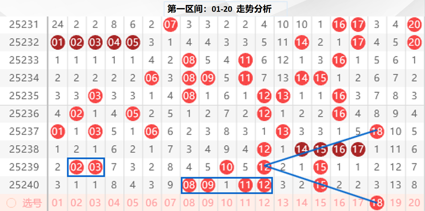 一区分析:【01-20】(走势图标注号码非小黄车大底,请谨慎参考,具体思路将在直播间分享讨论)
