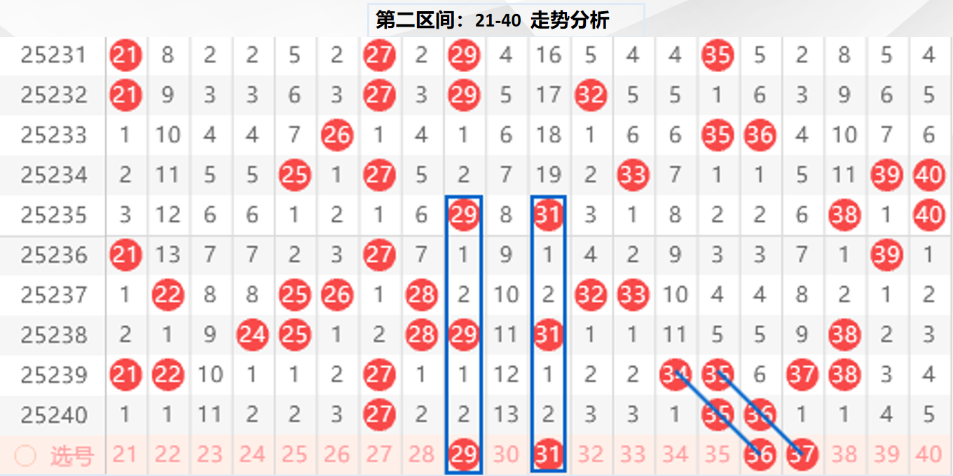 二区分析:【21-40】(走势图标注号码非小黄车大底,请谨慎参考,具体思路将在直播间分享讨论)