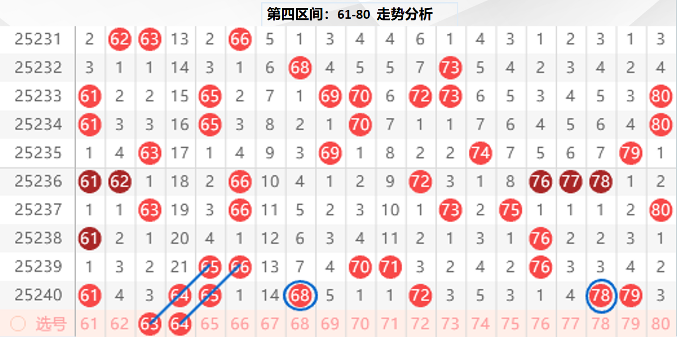 四区分析:【61-80】(走势图标注号码非小黄车大底,请谨慎参考,具体思路将在直播间分享讨论)
