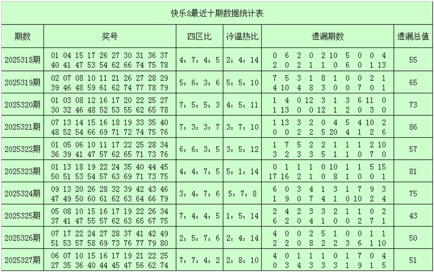 一、快乐8第2025328期奖号分析(定义:遗漏0-2期号码为热码,遗漏3-6期号码为温码,遗漏7期及7期以上号码为冷码,重码为上期开出奖号,邻码为上期没有出现,但与上期奖号差值为1的号码,例如上期开出奖号04,没有出现号码03和05,则本期03和05都为邻码,其它则为孤码。
