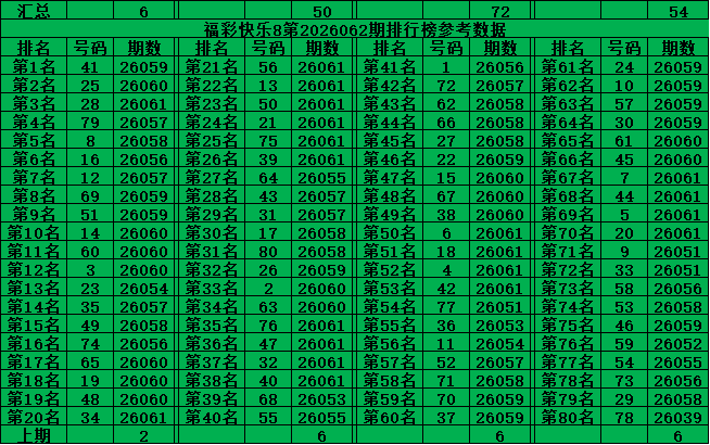 综上所述,福彩快乐8第2026062期推荐号码: