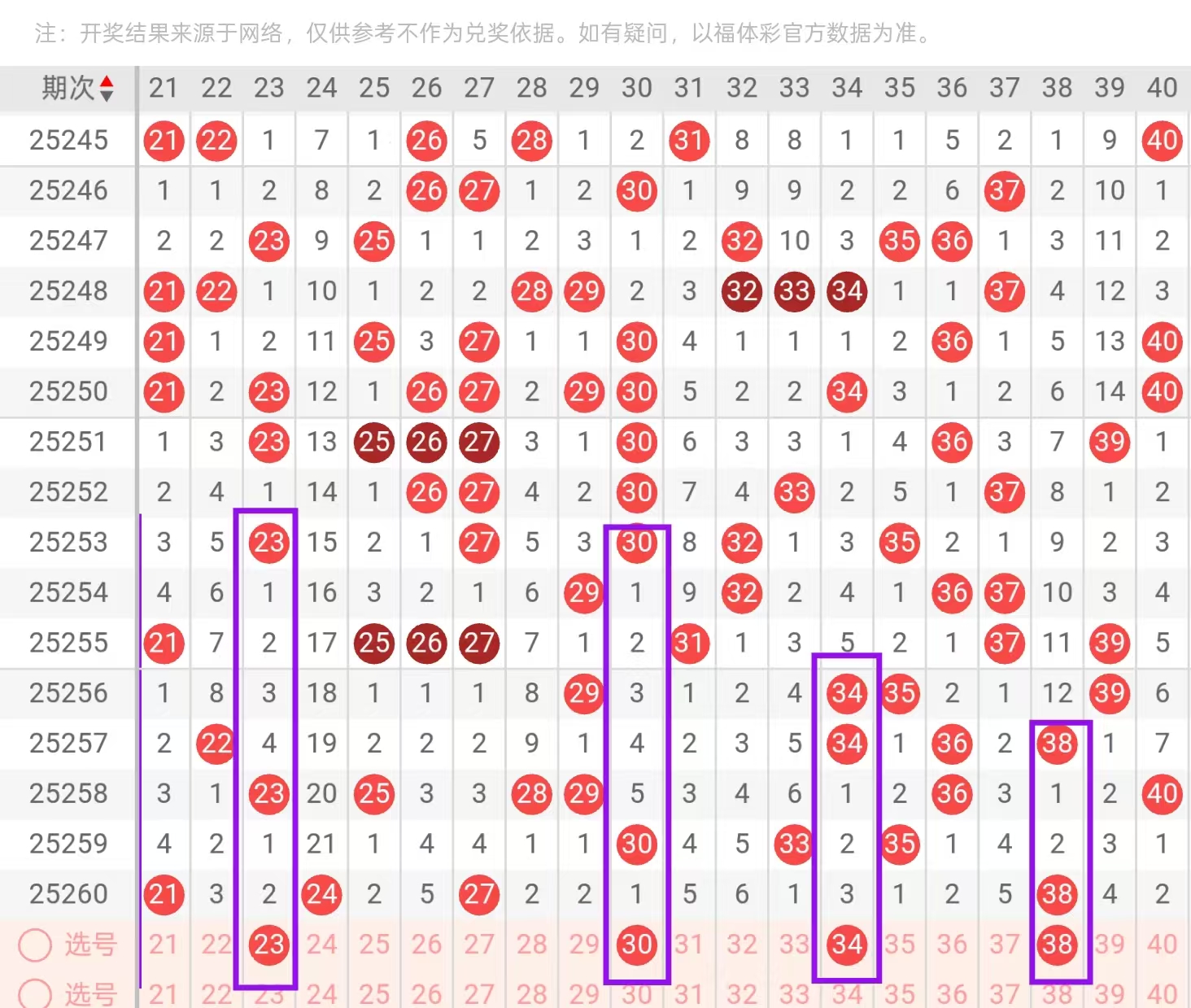二区21-40:二区间,近期一直在大面积的回补空缺位置,上一期回补了四个号码的下落,从近期二区间的号码分布来看,今天我们主要关注的是中部区域号码的下落,在二字头首先要关注的是龙头位置22-23二下一的选择和中部区域对子空二回补的下落,回到三字头首先我们要重点关注34-38二下一或同下的可能。