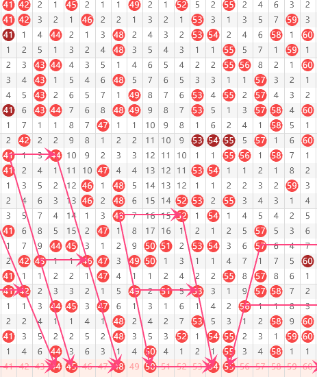 三区分析:【41-60】(走势图标注号码非小黄车大底,请谨慎参考,具体思路将在直播间分享讨论)