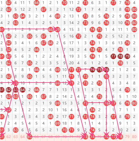 四区分析:【61-80】(走势图标注号码非小黄车大底,请谨慎参考,具体思路将在直播间分享讨论)