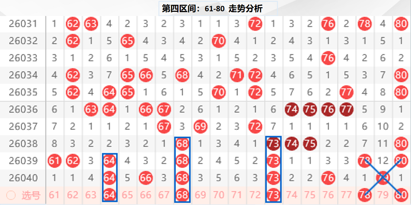 四区分析:【61-80】(走势图标注号码非小黄车大底,请谨慎参考,具体思路将在直播间分享讨论)