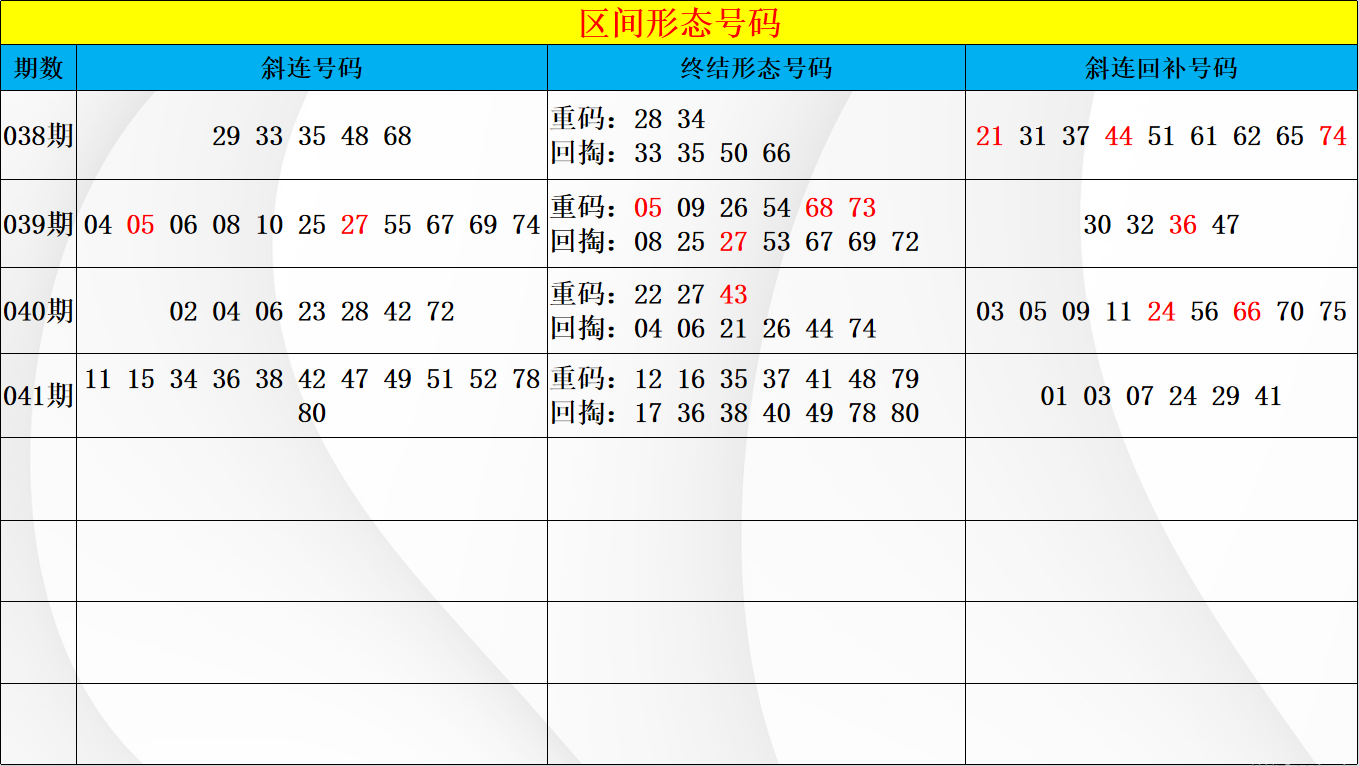 上期三区的开号中在区间连续两期未开重码的回补中开出了三码,空位中也是有接力温冷周期的号码开出。以区间做回补形态上的接力判断重点,首先在重码中还是要特别注意出号判断,以多重的回补模式做重码的重点判断上本期注意在43 50 51三码中的择一选择,同时在区间的同形态分边做41 48的判断中也要考虑在重码的终结防守位置,以41 51的同尾考虑,重码中注意41的开出,同时在分边的位置上侧重单码分边的布局选择。以区间在空位中的回补重点,号码中还是要特别注意小周期上的回补选择,对应位置在46 57 58 60四码中,其中以前期的等距放空做回补判断上57 58下方还是要特别注意开号选择,三期放空的回补中出号的机会还是比较大的。